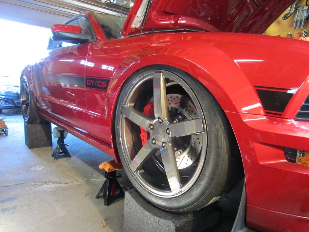 I like to work on the underside of the car with the wheels resting on 12” Race Ramps wheel cribs. The wheel cribs while not cheap are light weight and very strong.